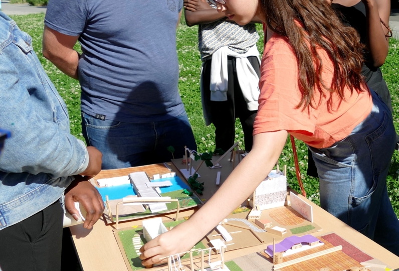 Le 13 juin 2022 a eu lieu une restitution commune. Les collégiens se sont rassemblés à mi-chemin entre les deux établissements, au jardin Serpollet. Un emplacement stratégique situé face aux locaux de l’équipe de développement local (EDL) et de la piscine Yvonne-Godard, l’un des premiers projets du NPNRU.