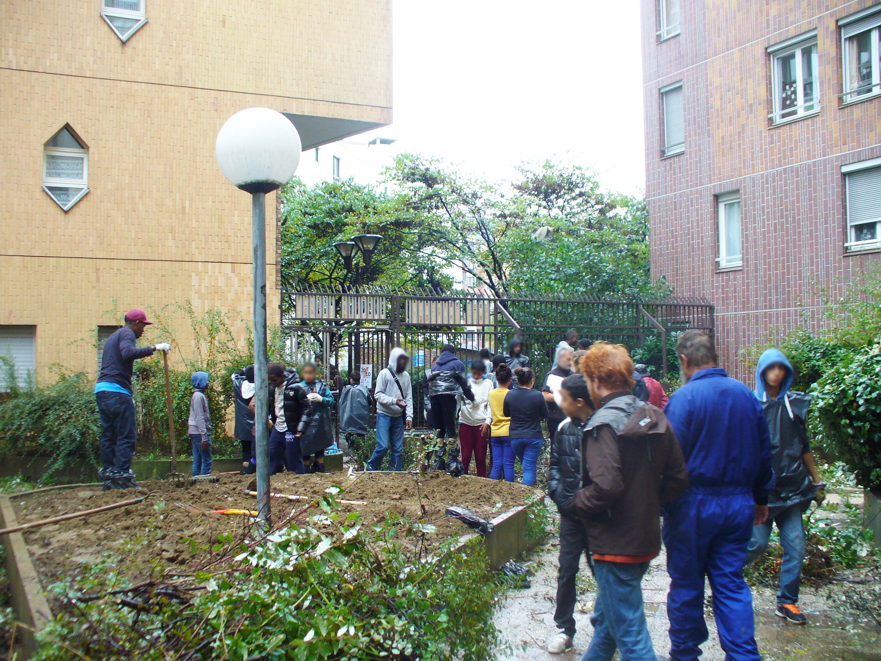Le partenariat avec le 10° United - lieu d'accueil innovant du 10ème arrondissement - entamé en 2012, pour la conduite d'un atelier participatif autour du réaménagement d'une cour au cœur du quartier de la Grange aux Belles, s'est poursuivi en 2013 avec 5 ateliers d'une demi-journée. Les jeunes de la structure et quelques habitants se sont associés pour définir le plan paysager de la cour à l'aide d'une paysagiste, pour ensuite planter les jardinières, grâce au soutien des jardiniers du quartier.