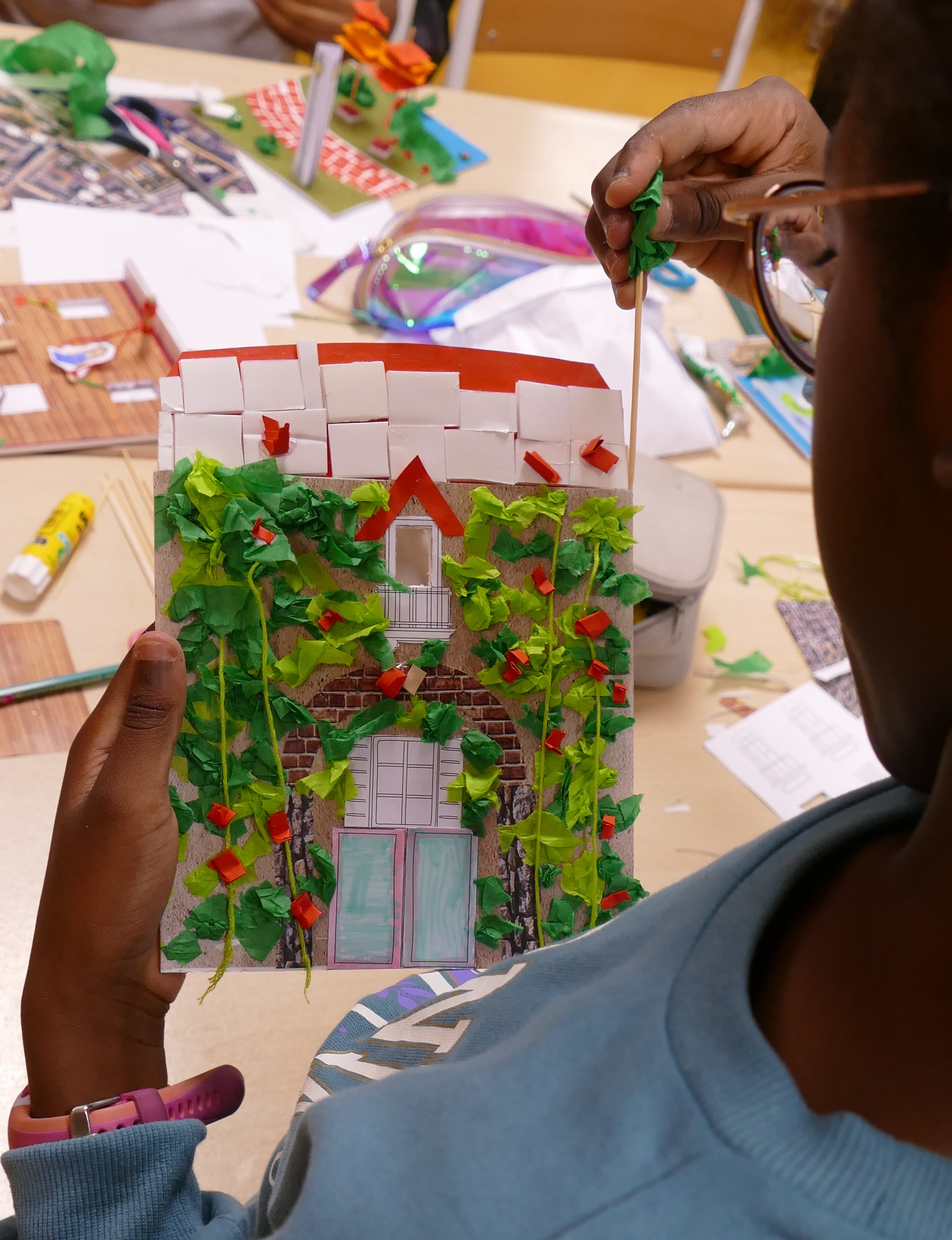 En classe, les enfants ont réalisé des maquettes restituant leur vision sensible du trajet entre l’école et le cinéma.