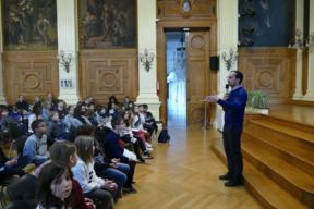 Les enfants ont été accueillis par Dan Lert, adjoint à la Maire de Paris en charge de la transition écologique, du plan climat, de l'eau et de l'énergie. Il a échangé avec eux sur les enjeux du Plan Climat et leur a expliqué comment les propositions des enfants ont été intégrées au livre blanc de la concertation.