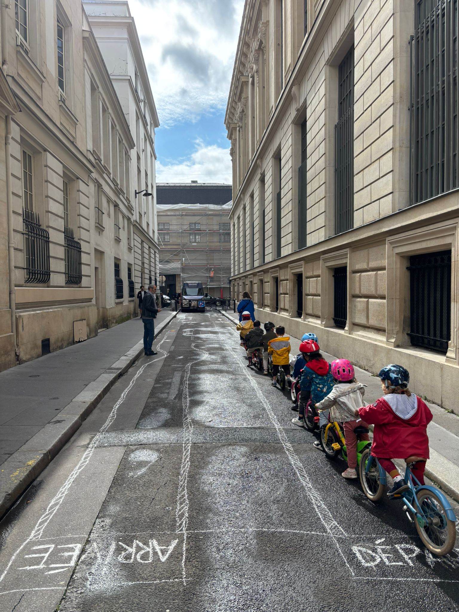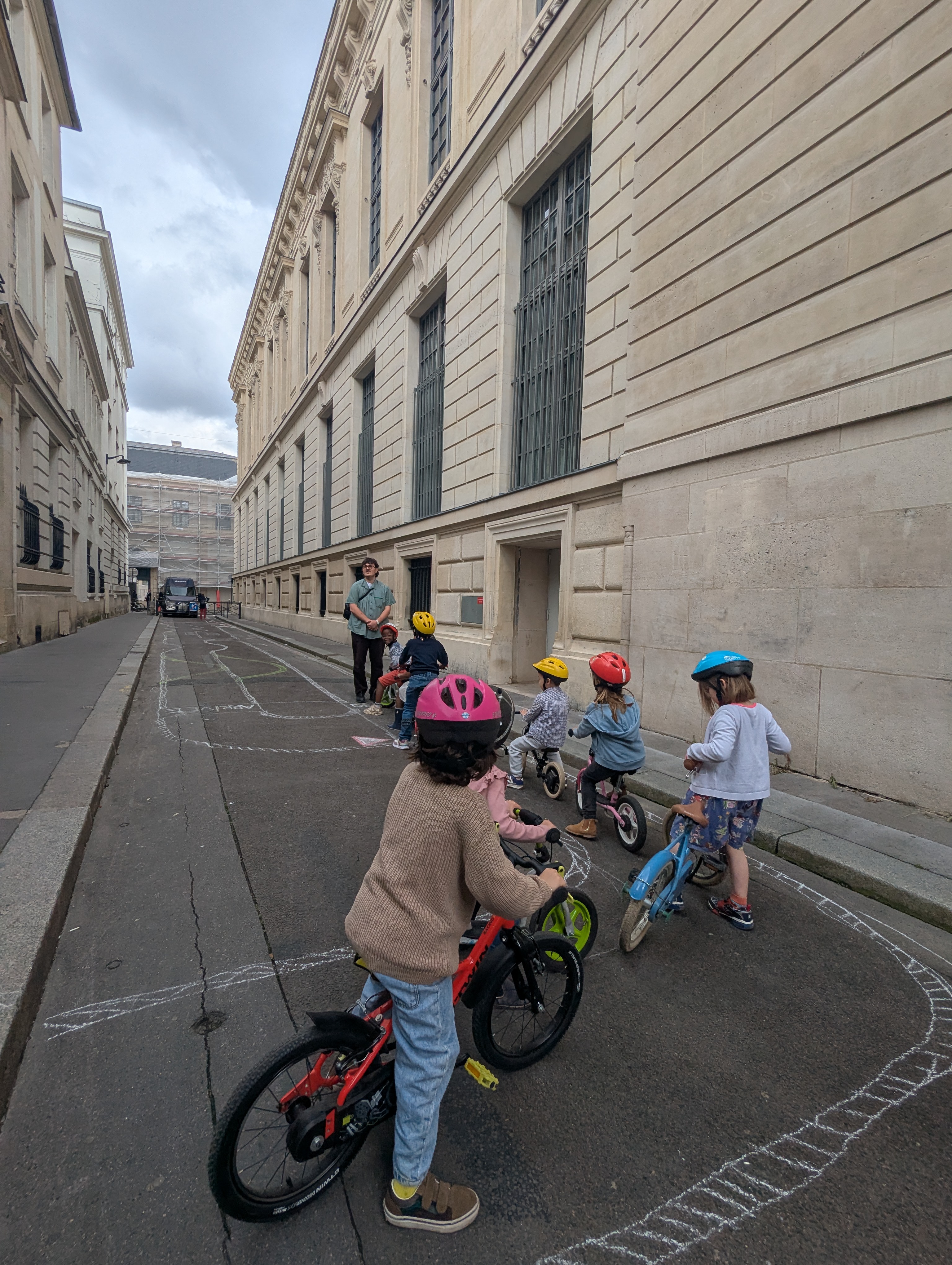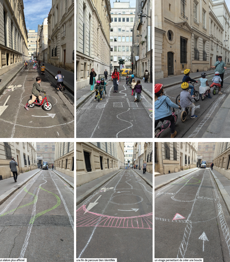Rue Colbert, les enseignants, leur directeur et la mairie de Paris Centre ont en effet exprimé le souhait commun d’utiliser la rue pour apprendre aux enfants à faire du vélo. Ce projet, à la fois ludique et éducatif, permet aux enfants de se familiariser avec la signalétique routière, d’apprendre à circuler en toute sécurité, et de gagner en autonomie et en confiance. Afin de soutenir cette ambition, la Ville de Paris et la mairie de Paris Centre ont souhaité engager un travail de co-conception avec les élèves et les enseignants.