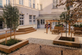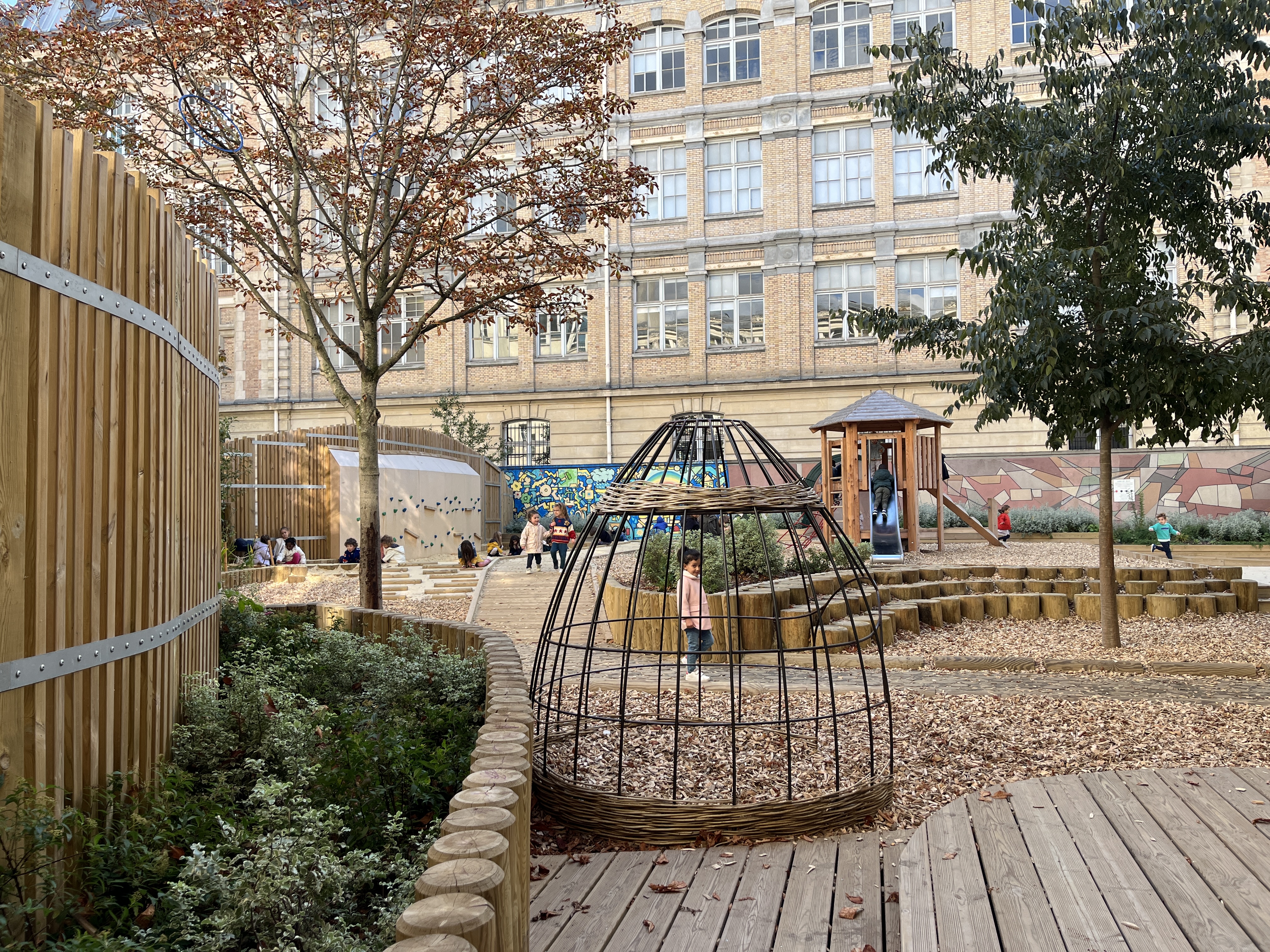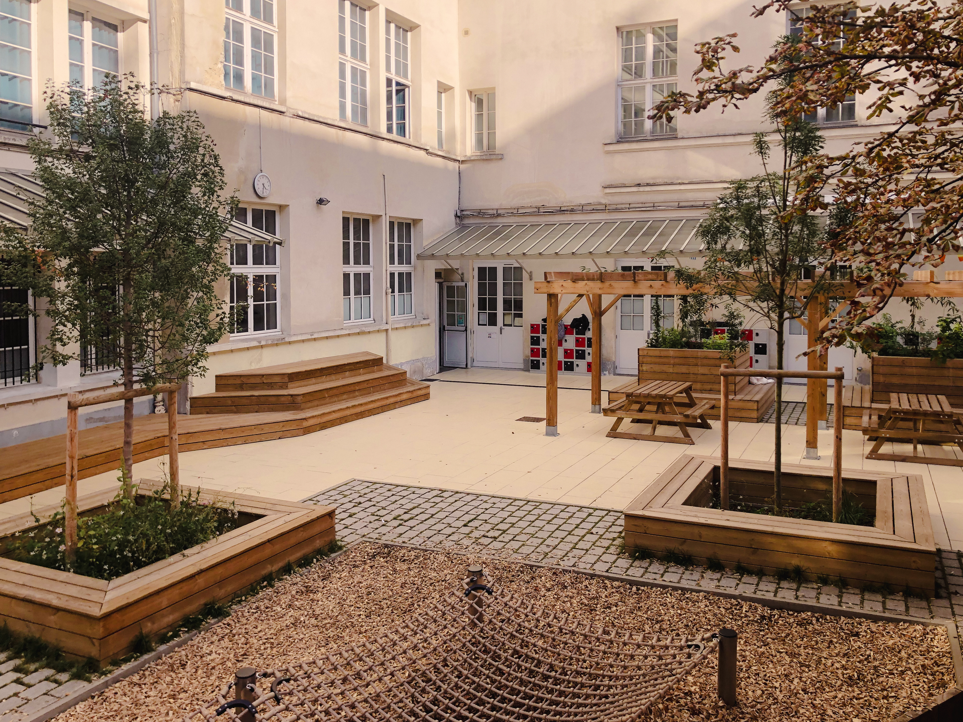 La stratégie de résilience de Paris, adoptée en septembre 2017, vise à renforcer et à accroître la capacité du territoire à faire face aux grands défis climatiques et sociaux du XXIe siècle. L’initiative des « cours Oasis » imagine des cours mieux adaptées au changement climatique et aux pratiques des enfants. Ce projet impacte les méthodes de définition des cours et de gestion de ces espaces extérieurs des équipements publics parisiens.