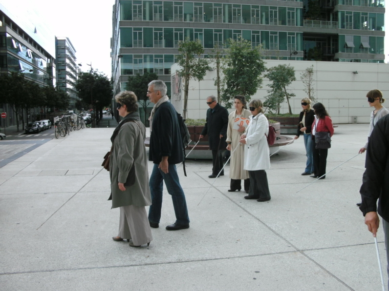 La journée était structurée en deux temps : une matinée de conférences et d'échanges en salle, à la Maison des Métallos et un après-midi de mise en situation de handicap visuel pour explorer l'environnement de la Bibliothèque Nationale de France et ses aménagements spécifiques.